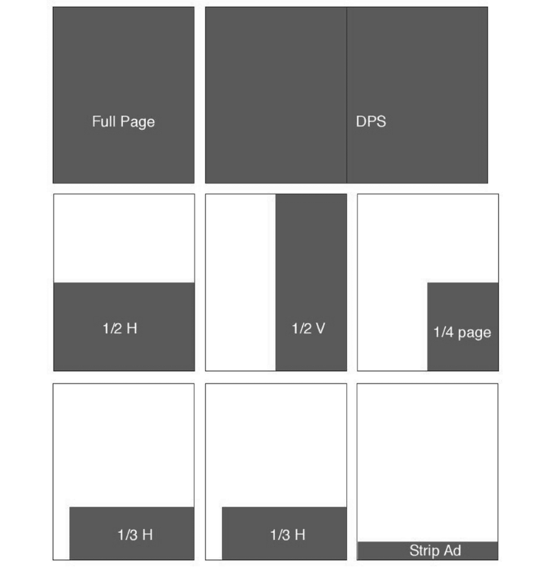 | 1/3 vertical | 310h X 81w mm | 2 Weeks prior to publication date |