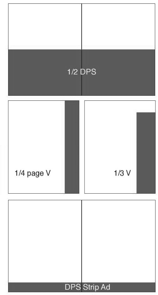 | 1⁄2 DPS | Type: 155h X 520w mm | 2 Weeks prior to publication date |