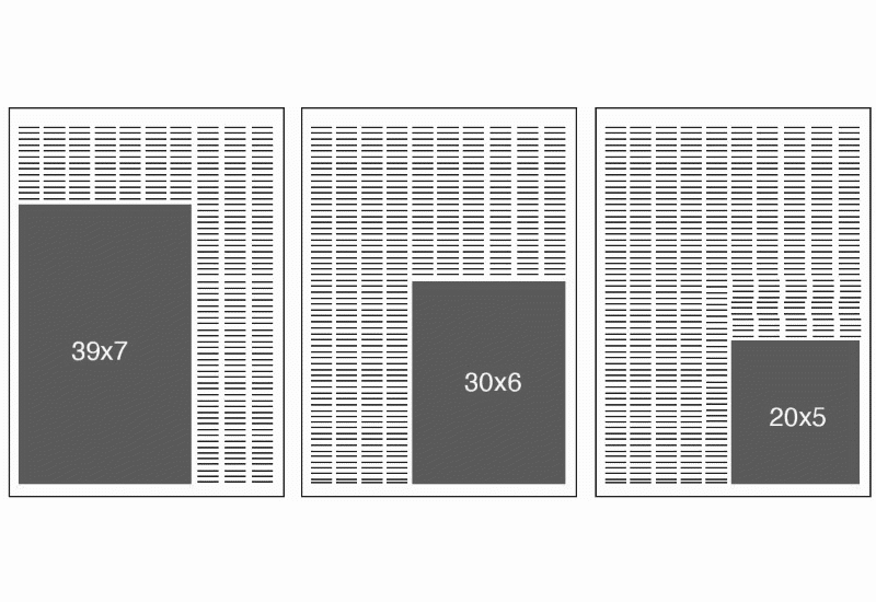 | 7 X 3 Strip | 70h X 205w mm | FM- 1 Week prior to publication date |
