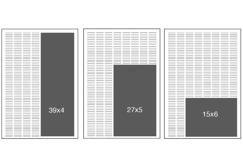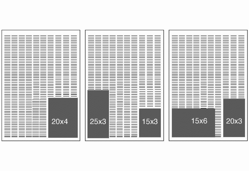 | 54×20 (DPS) | 540h x790w mm | Sunday Times – Thursday 16h00 prior to publication |